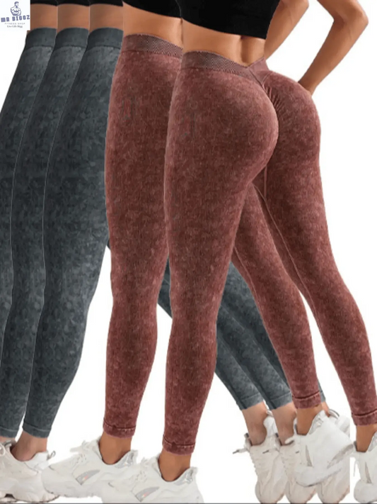 5-Pack Women's High Waist Seamless V-Back Scrunch Butt Leggings for Yoga & Gym
